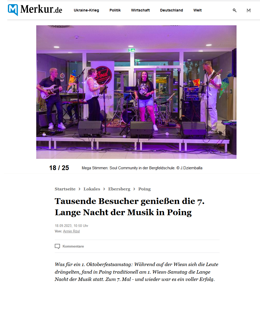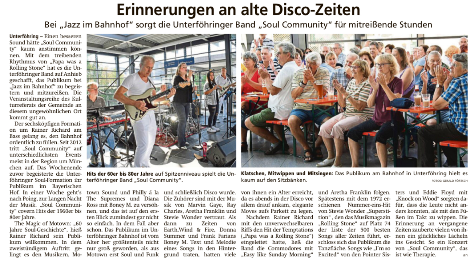 Wir hatten noch nie so eine gute Party-Band zu Gast wie Soul Community!” (Anläßlich der “Mittelwalder Mittnacht” 2019 / www.alt-mittenwald.de)“